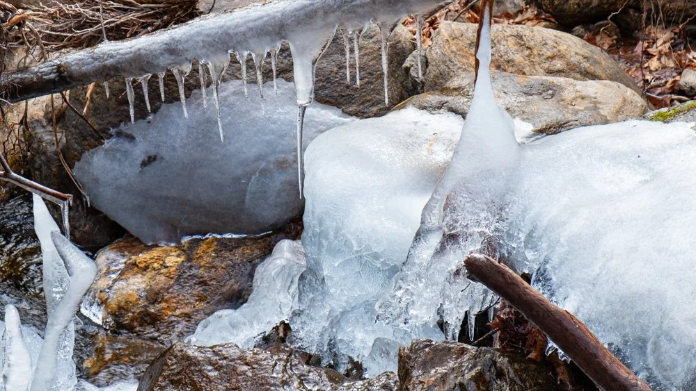 Ice formations under a boulder in White Oak Creek. Julie Williams Dixon 2026